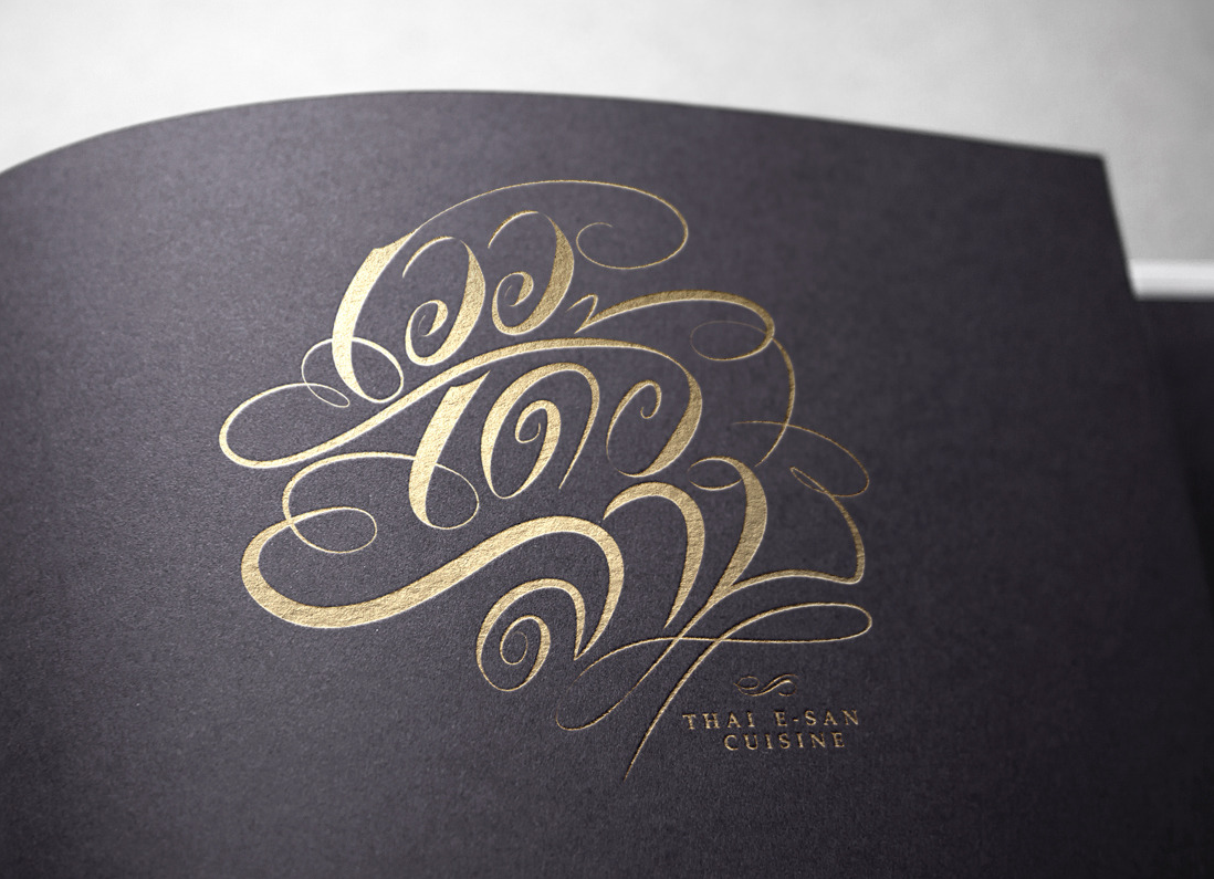 Lettering style logo that exudes sophistication and pays homage to the rich culinary heritage of Thailand's E-San region.